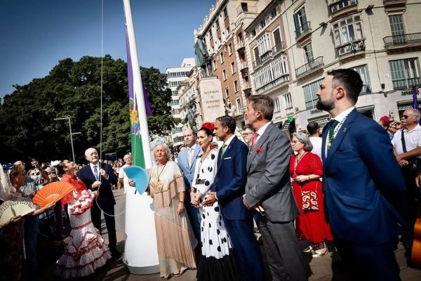 En una comitiva que iba encabezada por el Alcalde de Málaga, Francisco de la Torre, nuestro Presidente, Rodrigo Bocanegra, la Edil de Fiestas, Teresa Porras y nuestra Abanderada, Toñi Moreno, han recorrido las calles del Centro Histórico, añadiendo este año como novedad la vuelta de realizar el izado de la bandera de la Feria junto al monumento al Marqués de Larios, como se hacía años atrás.